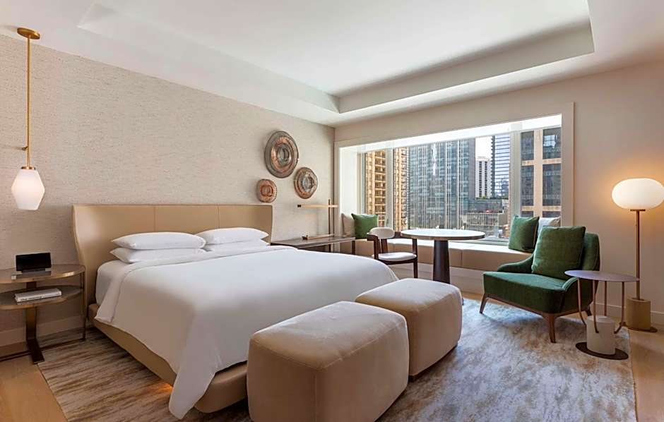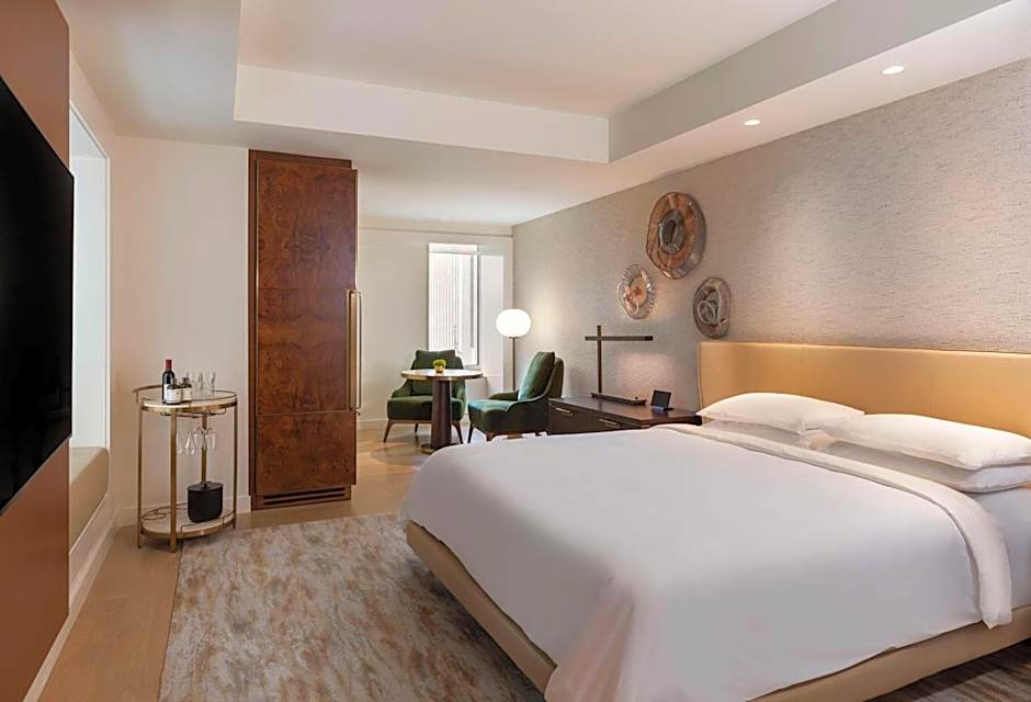 This suite has a marble foyer, living room and dining room area, office area and a dual-head shower with separate bath tub. A 42 inch flat-screen TV, coffee maker and plush robes are included as well.
